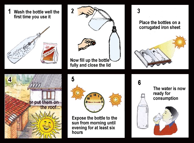 SODIS (Solar Water Disinfection) - a simple, low-cost and easily replicable solution to clean drinking water. SODIS works through a combination of heat and pathogen-killing Ultra Violet radiation (both through sunlight).